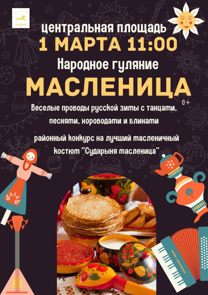 1 марта на Центральной площади Нурлата состоится яркий и веселый праздник – Масленица!