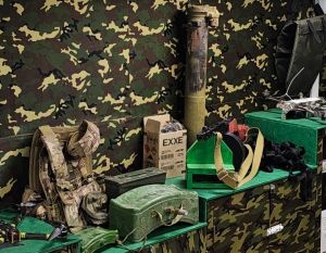 Выставка военного имущества и трофеев, добытых на специальной военной операции, открылась на базе пункта приема гуманитарной помощи.