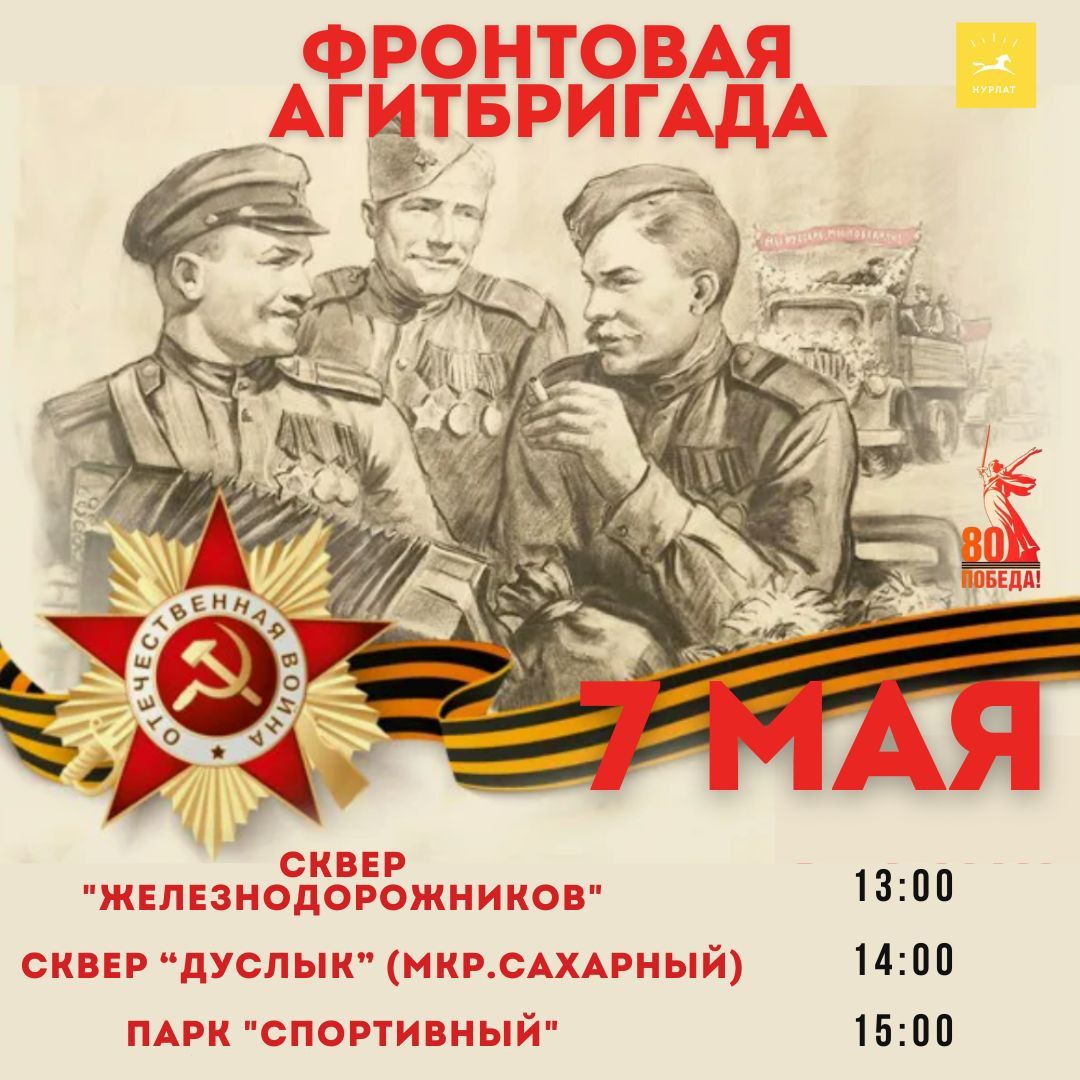 С 13:00 - Парки и скверы города: выступления фронтовой агитбригады с песнями военных лет «Голоса прошлого».