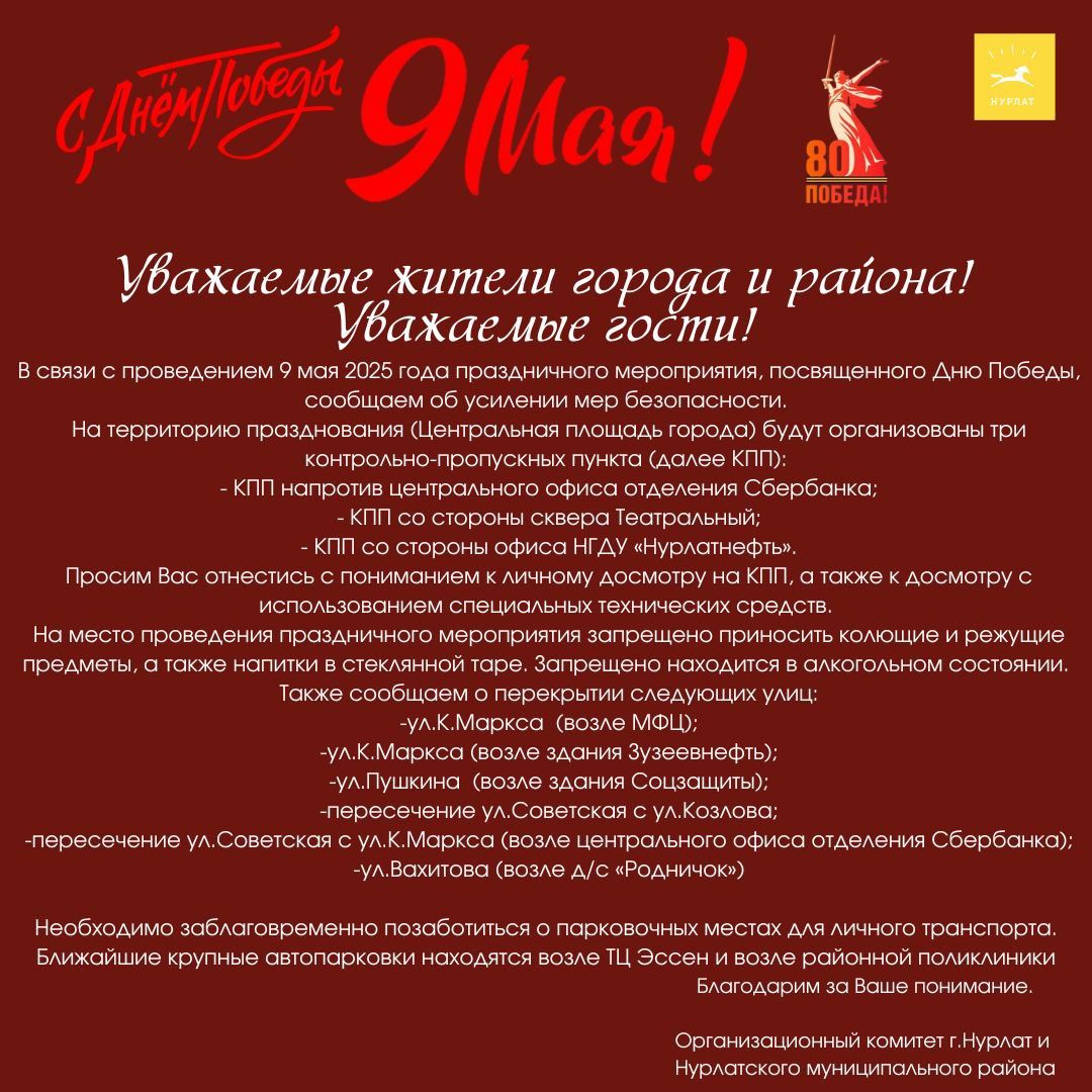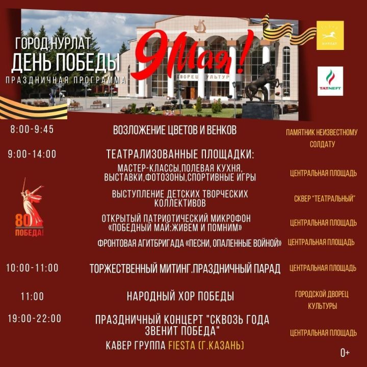 Жителей и гостей города Нурлат приглашают принять участие в торжественных и праздничных мероприятиях, посвященных Дню Великой Победы!