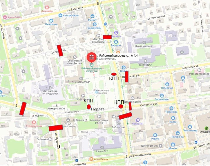 Для контроля ситуации будут привлечены силы и средства Государственной инспекции безопасности дорожного движения. Дополнительно предусмотрена работа системы видеонаблюдения с использованием 12 камер наружного наблюдения, установка акустической системы AC-300 и автоматизированной системы оповещения и управления эвакуацией, размещённой снаружи здания Исполнительного комитета Нурлатского муниципального района.