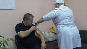 Глава района и его подчиненные прошли вакцинацию от гриппа.