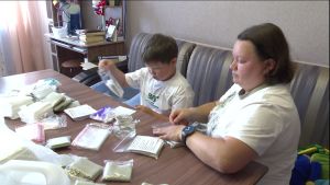 Сын погибшего в зоне спецоперации нурлатца вместе с мамой и старшим братом Макаром изготавливают компактные гигиенические наборы.
