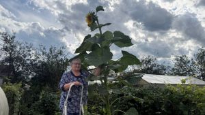 Альфия Гафурова вырастила на своём участке настоящего гиганта — подсолнух высотой более 3 метров! Его цветок может достигать полуметра в диаметре.