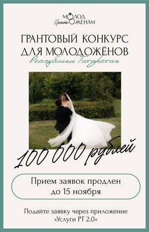 Прием заявок на уникальные свадебные гранты в Татарстане продлен до 15 ноября 2025 года.