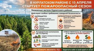 Уважаемые жители Нурлатского района! Постановлением Кабинета Министров Республики Татарстан № 98 «О мероприятиях по обеспечению пожарной безопасности в Республике Татарстан в 2026 году» пожароопасный сезон установлен с 15 апреля 2026 года. В этот период действуют особые требования пожарной безопасности.