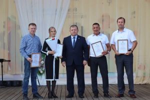 В сквере «Театральный» работников и ветеранов строительной отрасли поздравил глава Нурлатского района Дамир Ишкинеев.