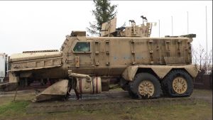 “Мастифф”, подбитый бойцами группы БПЛА 116-й отдельной бригады особого назначения - центральный экспонат выставочной площадки на территории придорожного кафе на 9-м километре автодороги Нурлат-Бурметьево.