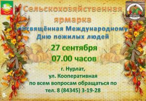 Завтра, 27 сентября 2025 года на улице Кооперативная пройдет осенняя сельскохозяйственная ярмарка, приуроченная к Международному дню пожилых людей.
