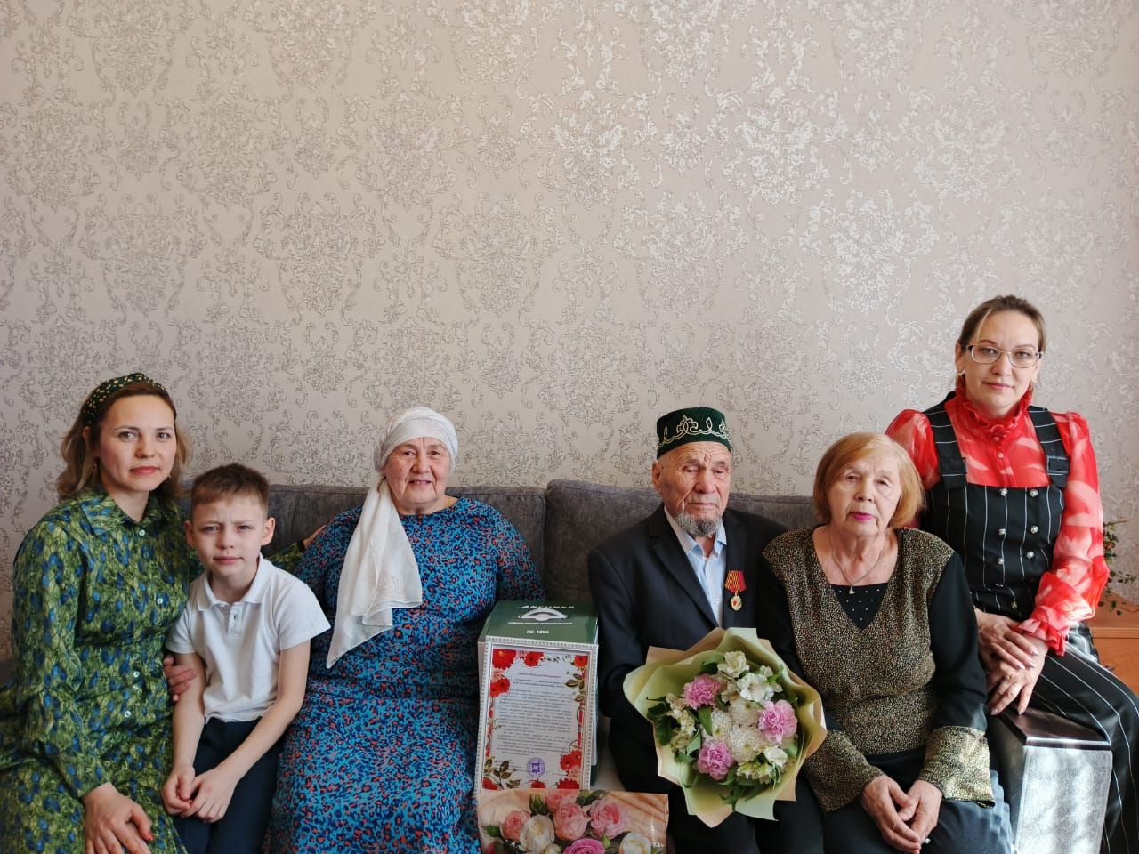Житель села Степное Озеро, труженик тыла и ветеран труда Шайдулла Шаймарданович Камалетдинов встречает 80-летие Победы в Великой Отечественной войне в Самаре, где сейчас проживает у дочери. Несмотря на расстояние, земляки нашли возможность лично поздравить юбиляра. Глава Степноозерского сельского поселения Алсу Шакирова и председатель совета ветеранов (пенсионеров) Нурлатского района Разия Садретдинова посетили Шайдуллу Шаймардановича, вручив ему памятную медаль «80-летие Победы в Великой Отечественной войне», а также передали поздравления и подарок от главы Нурлатского района Дамира Ишкинеева с 95-летним юбилеем.