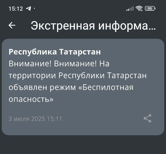 В Татарстане 3 июля дважды активировали режим «беспилотная опасность» из-за риска атак БПЛА.