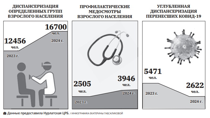 В нашем районе в течение ряда лет практикуется и выездная диспансеризация, когда к работникам предприятий врачебная бригада приезжает, можно сказать, на рабочие места. В 2024 году таким образом диспансеризацию прошли 1389 работников 23-х организаций и предприятий города. В новом же году запланировано охватить выездной диспансеризацией не только работников промышленных предприятий, но и образовательных организаций, учреждений культуры, спорта и др. Для прохождения профилактического медицинского осмотра и диспансеризации необходимо обратиться в каб. 115 поликлиники Нурлатской ЦРБ или к участковому врачу-терапевту. Как говорится, наше здоровье – в наших руках. И заботиться о нем, прежде всего, нужно самому.