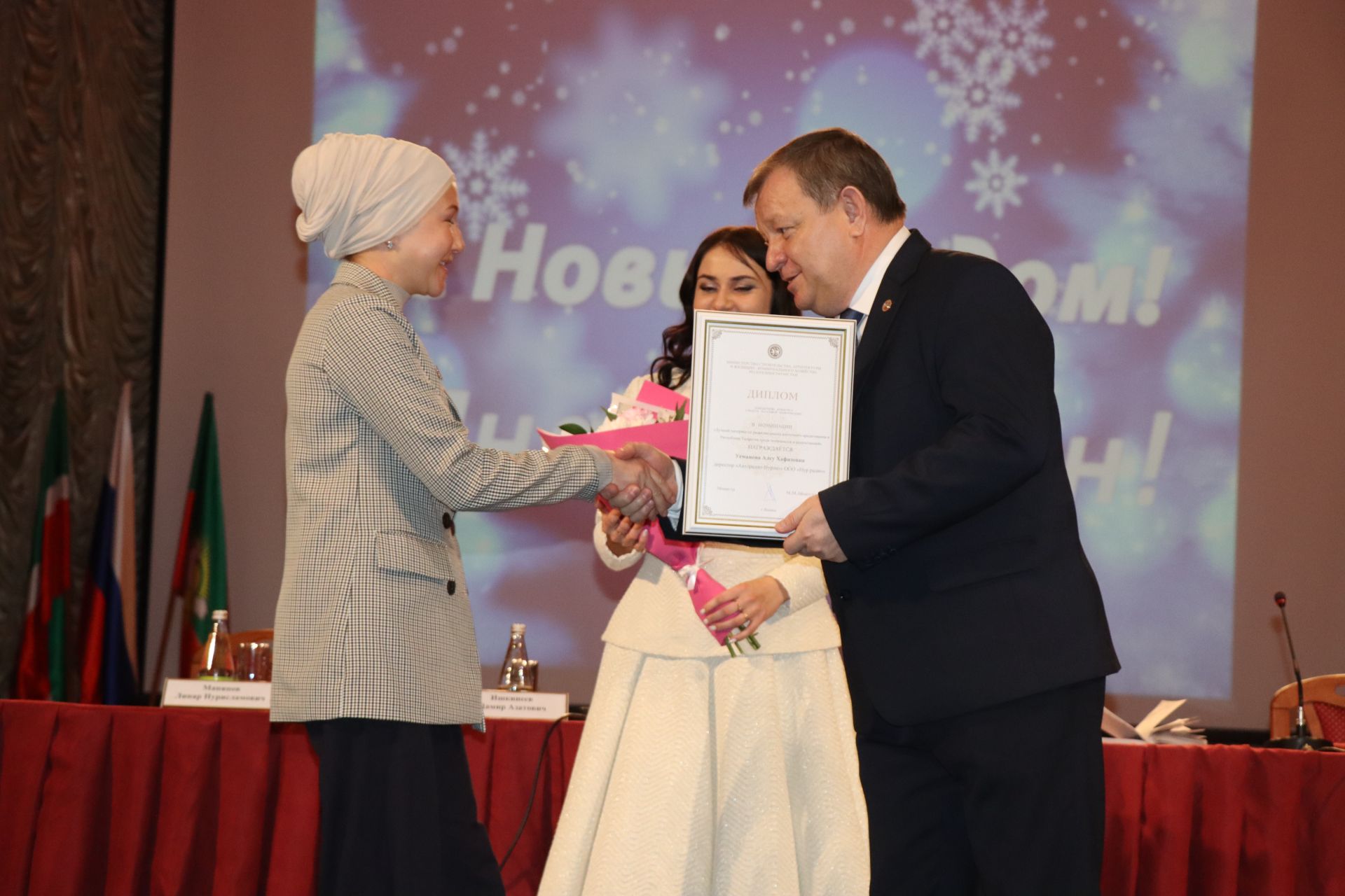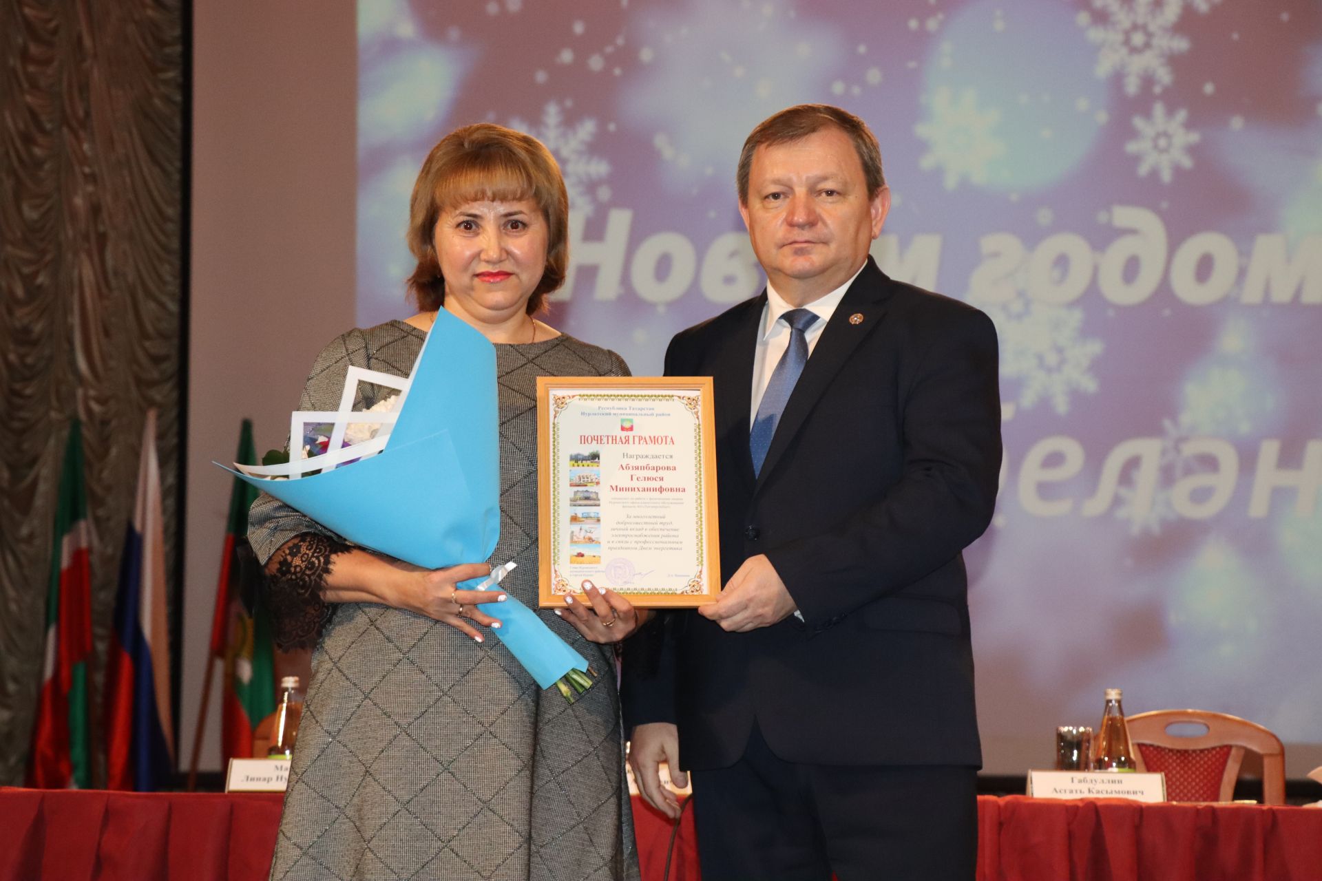 Здесь же Дамир Ишкинеев наградил Дипломами Министерства строительства, архитектуры и ЖКХ РТ директора «Авторадио-Нурлат» Алсу Усманову и корреспондента ТРК «Нурлат» Гульназ Хасаншину за победу в республиканском конкурсе СМИ.