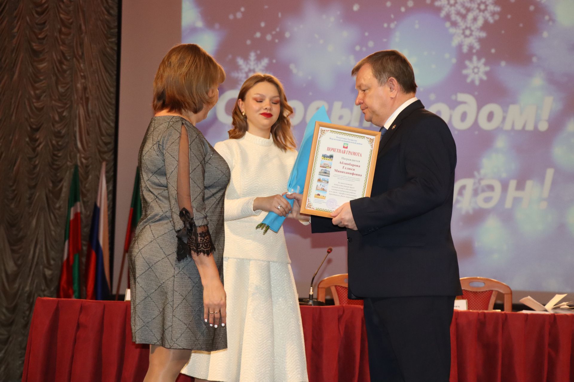 Со словами поздравлений и теплыми пожеланиями к руководителям обратился глава района Дамир Ишкинеев и вручил награды.