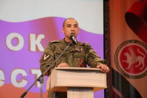 В Нурлате состоялась знаковая встреча: учащиеся школ района и волонтеры смогли пообщаться с Героем России, командиром экипажа легендарного танка «Алеша» Расимом Баксиковым.