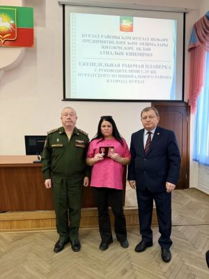 Нурлат районының оешма-предприятие җитәкчеләре катнашында узган атналык эшлекле киңәшмә барышында район башлыгы Дамир Ишкинеев һәм хәрби комиссар Заһир Абдуллин махсус хәрби операция зонасында һәлак булган хәрби хезмәткәрләрнең туганнарына дәүләт бүләкләрен тапшырдылар.