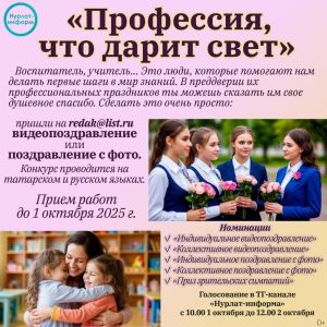 «Нурлат-информ» приглашает вас принять участие в творческом конкурсе видеопоздравлений и поздравлений с фото, приуроченном ко Дню учителя и Дню воспитателя!